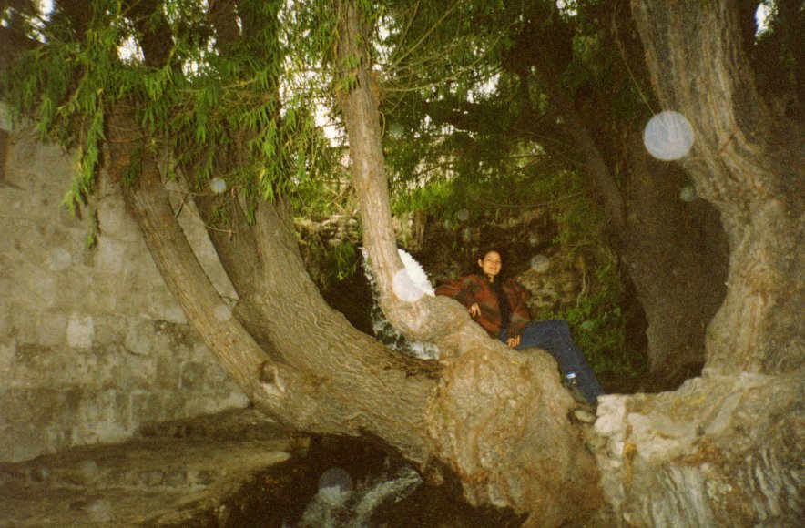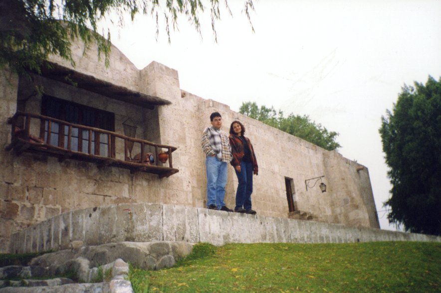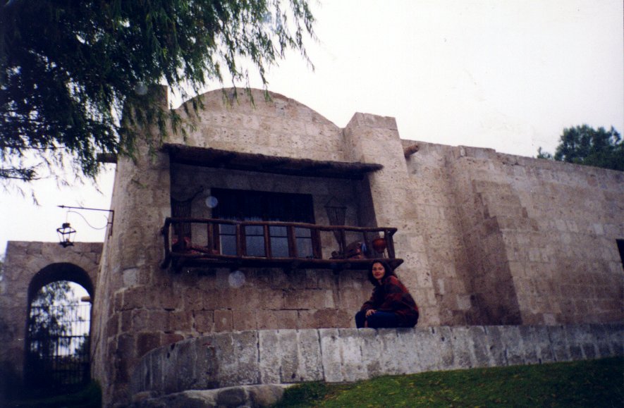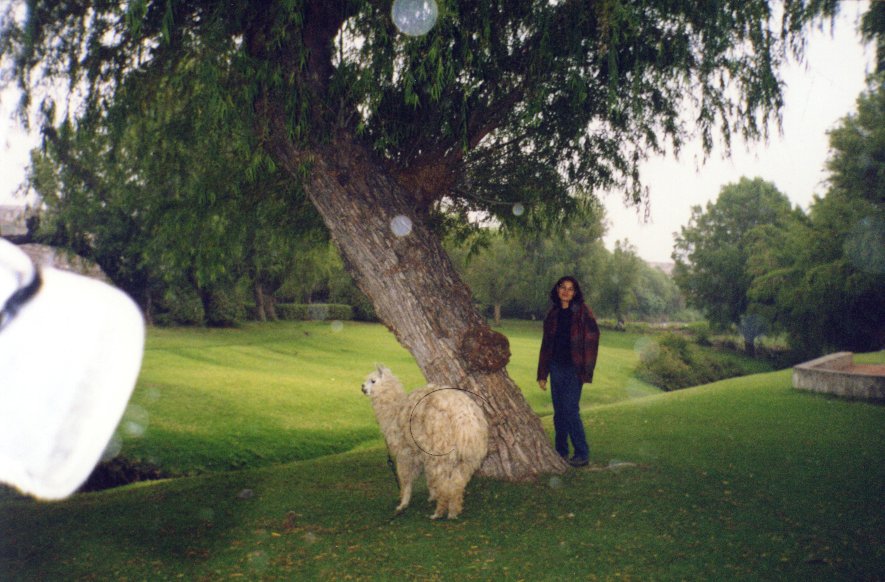 | Charo en la parte trasera del Molino | Con una llama, vicuña, alpaca, nose.... |